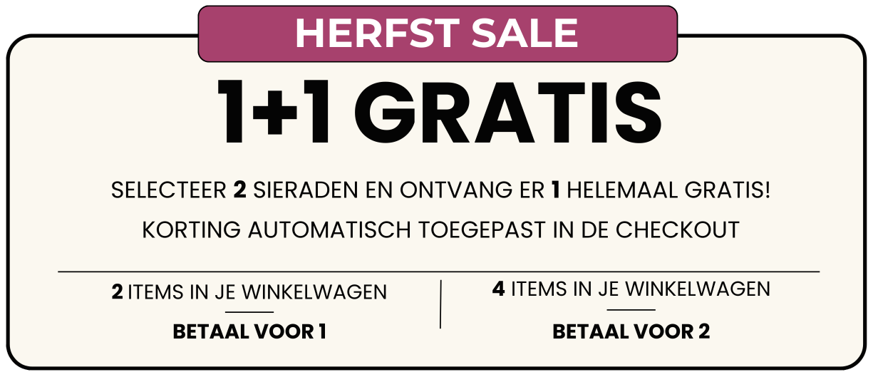 1+1 Gratis - Laatste Kans Deze geliefde designs verdwijnen voorgoed. Shop nu luxe sieraden voor elke dag, voordat ze weg zijn.