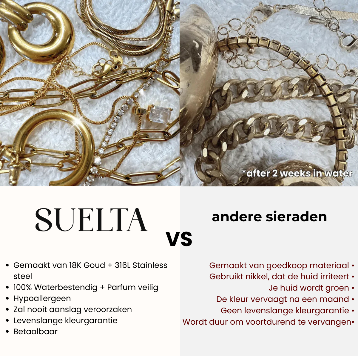Bij suelta draait alles om producten die je uitstraling compleet maken. Als merk streven we naar betaalbare luxe en hoogwaardige kwaliteit, zodat je altijd iets bijzonders vindt, voor jezelf of als cadeau. We selecteren onze items met zorg, zodat ze passen bij jouw momenten