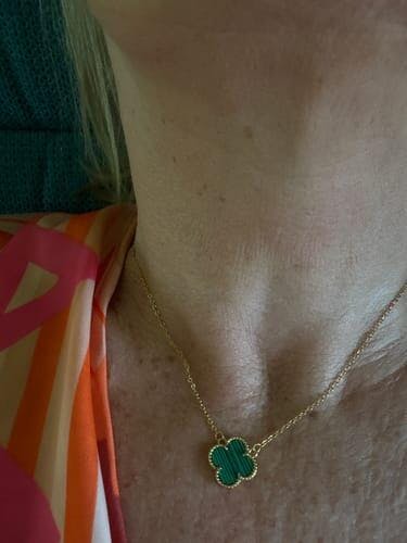 Be enchanted by the refined beauty of the CLOVER Necklace . Inspired by the iconic clover design, this elegant necklace brings a luxurious look with a modern twist. The black stone gives a subtle shine that fits perfectly with both everyday outfits and special occasions.